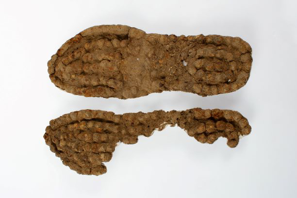 Soulignons tout d’abord la présence de clous en fer sur les semelles. Ils permettaient non seulement de les renforcer, mais aussi de faciliter l’adhérence au terrain, comme pour nos joueurs de foot !