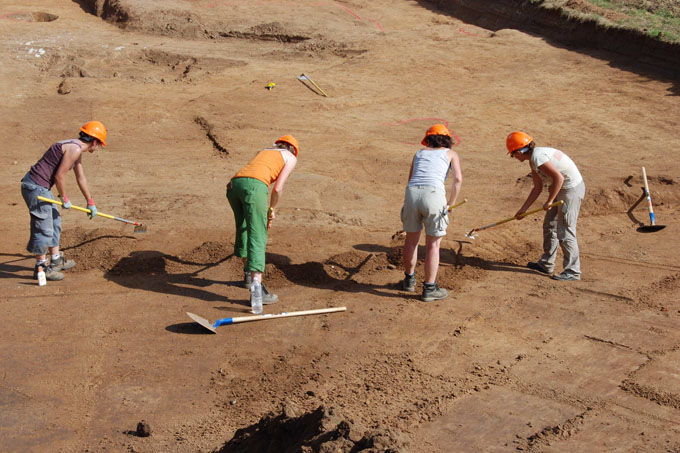 À la sortie de Guînes le long de la RD 244, un diagnostic réalisé en début 2008 conduit à une fouille d’une zone riche en vestiges à l’automne 2009. Après le passage d’une pelle mécanique de 20 tonnes, un nettoyage minutieux à la binette permet de localiser les vestiges.