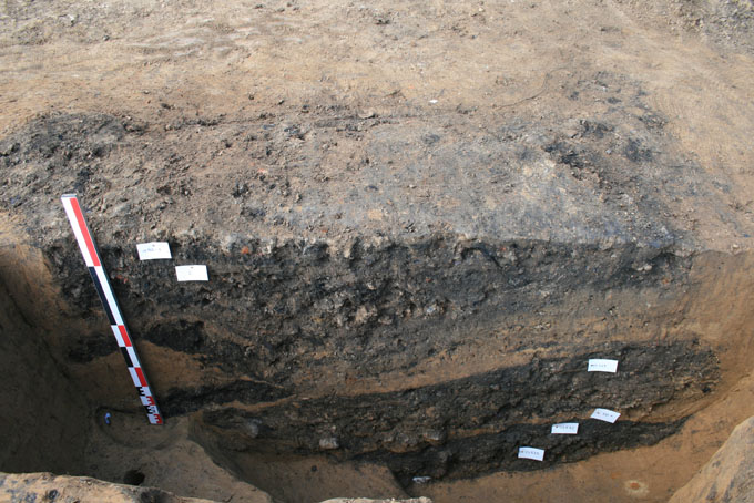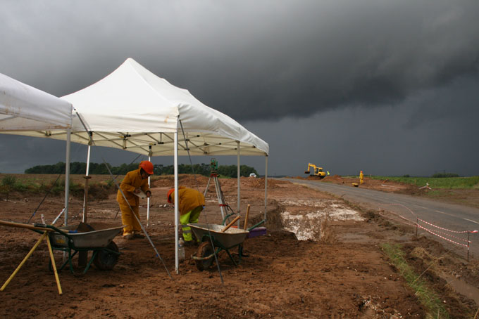 La découverte d’un four de potier à double chambre de cuisson de l’époque médiévale est rare. Il contenait des grandes jattes, des moules à chandelles et des couvre-feux. Les relevés et les photographies sont les seules traces qu’il restera du four une fois l’élargissement de la route effectué.