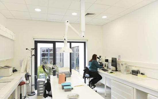 Laboratoire d'analyse, il dispose notamment d'une loupe binoculaire, d'un microscope et d'une étuve. Droits réservés ©CD62/DirCom/Y. Cadart