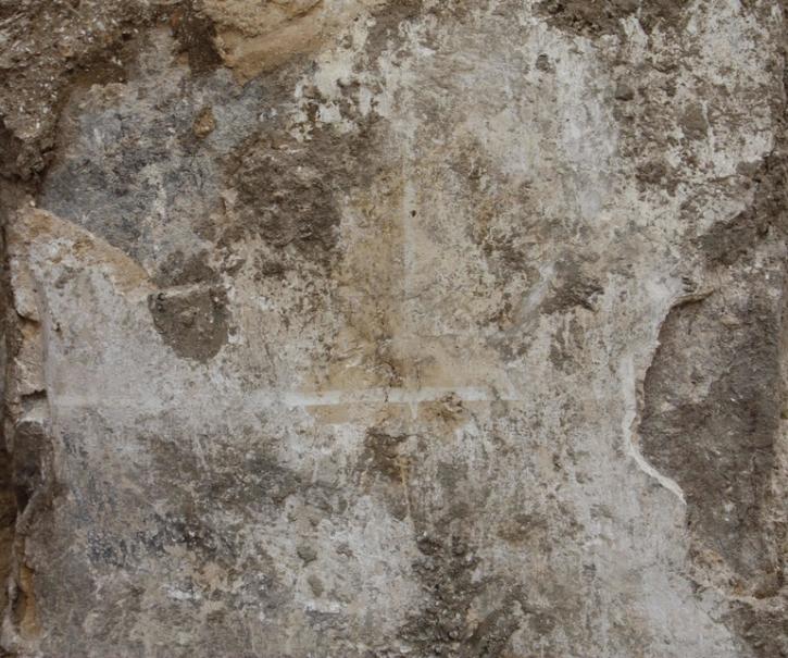 Une autre découverte a particulièrement retenu l’attention des archéologues. Des enduits peints, toujours en place, ont été découverts sur les murs de la crypte. Des mesures ont été rapidement prises, afin de les préserver au mieux.