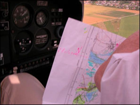 Une carte est indispensable pour repérer les sites déjà connus et localiser les sites découverts pendant le vol. L'objectif de chaque vol doit être défini précisément afin d'optimiser la recherche. Les sites à survoler et à photographier doivent être localisés sur une carte.