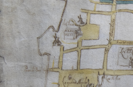 Extrait du "Plan et Situation de la Ville de Saint Omer avec Rues, Fregarts, Rivières, et la grandeur des maisons de Religion tant d’hommes que de femmes, comme aussy des Paroisses et Colleges, contenus en Icelle, dit plan Titelouze".