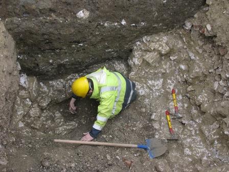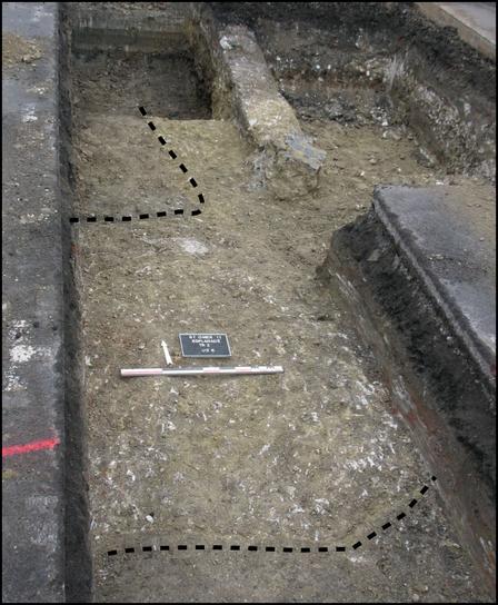 Les fossés du château occupent une grande partie du sous-sol au nord et à l’est de la place (3500 m² sur les 6000 m² sondés).