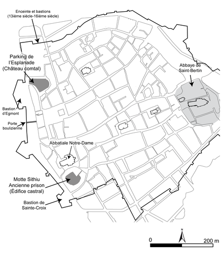 Avant la création de nouveaux aménagements urbains, deux diagnostics archéologiques en 2011 et 2013 ont permis de récolter des données sur deux châteaux de Saint-Omer. Le premier château se localisait sur la motte castrale à l’emplacement de l’actuelle résidence des artistes et le second château se situait sur l’actuel parking de l’Esplanade.