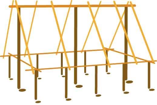 Seules les fondations des bâtiments livrent des informations aux archéologues pour comprendre les techniques architecturales. L’étude des matériaux d'origine végétale qui y sont découverts est précieuse. Elle permet d’identifier les essences de bois sélectionnées pour les poteaux, la manière dont est préparée et agencée la terre qui a servi à l’édification des murs et la nature des végétaux employés pour la toiture.