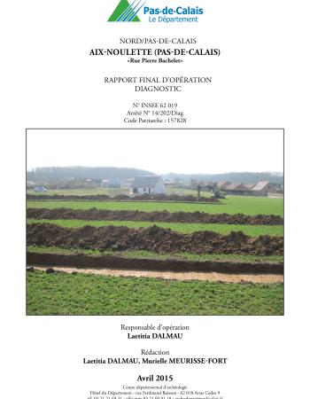 DALMAU (L.), MEURISSE-FORT (M.), Aix-Noulette, (Pas-de-Calais), Rue Pierre Bachelet, Rapport final d’opération de diagnostic, éd. Centre départemental d’archéologie du Pas‑de‑Calais, Dainville, 2015, 38 p., 11 fig.