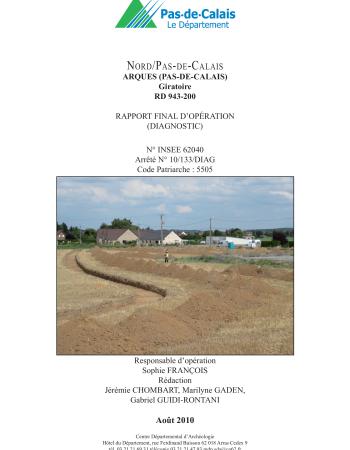 François et al. 2010 : FRANÇOIS (S.), CHOMBART (J.), GADEN (M.), GUIDI-RONTANI (G.). Arques, giratoire RD 943-200. Rapport final d'opération de diagnostic. Dainville : Centre départemental d'Archéologie du Pas-de-Calais, 2010. 35 p, 15 fig, 8 ph.