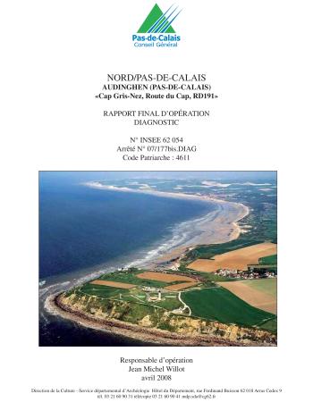 Willot 2008 : WILLOT (J.-M.). - Audinghen, Cap Gris-Nez, route du Cap, RD 191. Rapport final d'opération de diagnostic. Dainville : Service départemental d'Archéologie du Pas-de-Calais, 2008. 75 p., 43 fig., 26 ph.