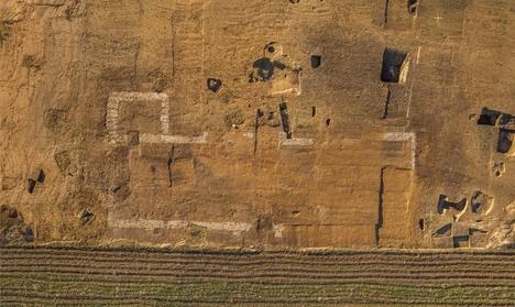 C’est le long de cette voie que va s’agglomérer un habitat qui perdure jusqu’au 5ième siècle et qui occupe toute la partie sud du site. De nombreuses fosses de grande taille, des celliers, des puits, 2 caves et un grand bâtiment de 33 mètres de long sur fondations de craie pilée ont été mis au jour lors de la fouille. Ces vestiges témoignent d’une agglomération routière qui s’étend au-delà de l’emprise de l’opération et dont l’étendue nous est aujourd’hui inconnue. Les nombreuses structures ont livré un abondant mobilier archéologique qui témoigne de l’activité domestique et artisanale de l’agglomération. Plusieurs fosses situées à proximité du grand bâtiment ont livré un grand nombre d’os de bas de pattes et de cranes de bovins qui entrent dans la catégorie des déchets de boucherie.
