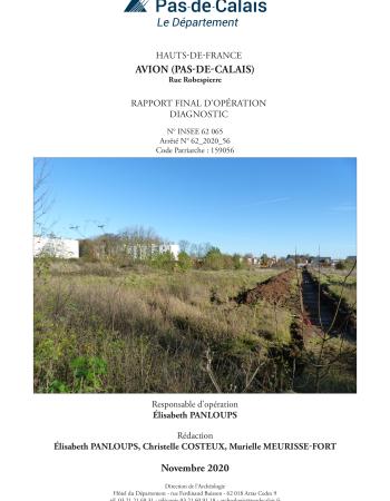 La Direction de l’Archéologie du Pas-de-Calais a procédé en novembre 2020 à un diagnostic sur l’emprise d’un projet de construction de logements par Territoires 62 à Avion, sous la responsabilité d’Élisabeth Panloups. La zone concernée par le futur aménagement est située au sud de la commune, jouxtant les plus anciens immeubles de la Cité de la République, construite dans les années 1960. Elle est bornée à l’est par la rue Robespierre et à l’ouest par la D40. L’emprise est située en position plutôt haute, sans lien direct avec un quelconque cours d’eau encore actif actuellement ; seule la Souchez (cours amont de la Deûle) coule plus largement au nord de l’emprise.