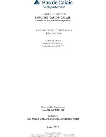 Rapport final d’opération de diagnostic, édition Direction de l’Archéologie du Pas‑de‑Calais, Dainville, 2016, 41 pages, 12 figures.