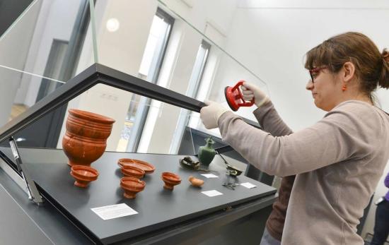 Préparation d'une vitrine d'exposition. Droits réservés ©CD62/DirCom/Y. Cadart