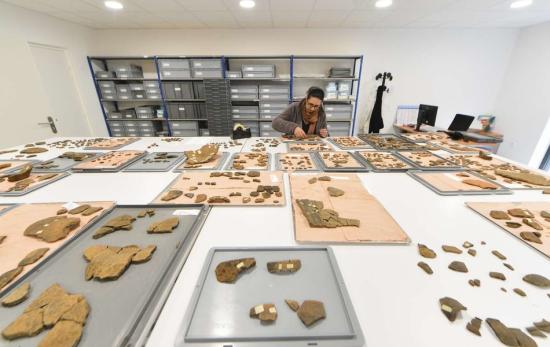 Grande salle d'étude pour observer et analyser les objets archéologiques, ici de la céramique. Droits réservés ©CD62/DirCom/Y. Cadart