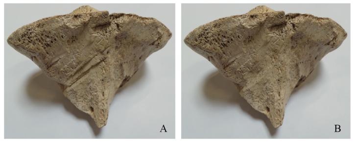 L'archéozoologue étudie les ossements d'animaux. À toi de te prendre au jeu ! Laquelle de ces deux cervicales de boeuf est marquée de traces de découpe ? Zoom on image