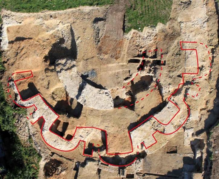 Les fondations calcaires de cinq chapelles en forme de fer à cheval en très bon état de conservation rayonnent autour d’une abside semi-circulaire.