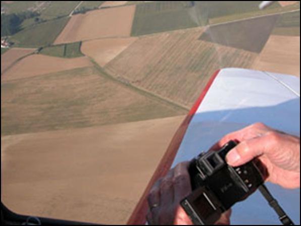 Généralement les archéologues aériens emportent deux ou trois appareils photographiques avec des objectifs légèrement différents qui vont s'adapter à toutes les situations.