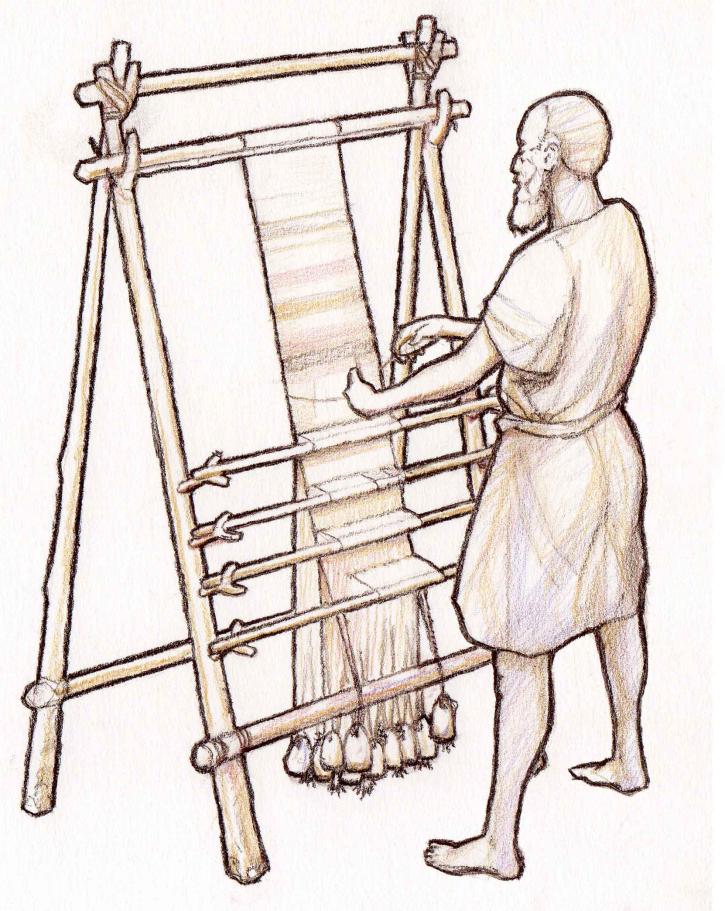 Tissage d’une ceinture grâce au peson fabriqué en séance 1 et aux plaquettes fabriquées en séance 2.