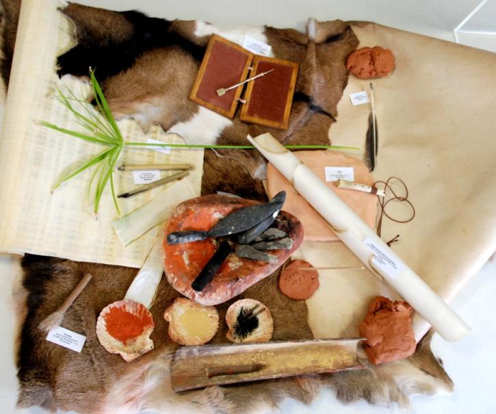 Les supports et les outils de l’écrit révélés par l’archéologie sont d’une grande diversité : argile, papyrus, céramique, cire, mur, bambou, plume, mue de serpent, calebasse, écorce, style, feuille de palmier, cuir, carapace de tortue, soie, parchemin, papier, etc. Les élèves sont conviés à découvrir les spécificités des matériaux de l’écriture à travers différentes époques et civilisations, jusqu’à l’époque actuelle marquée par la lecture sur écran. Un atelier d’écriture sur dyptichon, tablette de cire romaine, est organisé durant la séance.