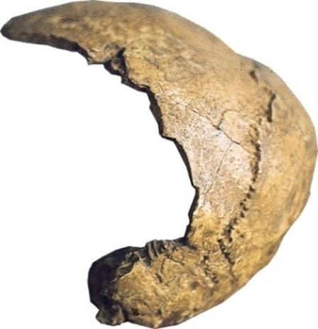 Le premier crâne a été exhumé le 05 mai 1976. Il se trouvait dans l’un des niveaux archéologiques les plus riches en artefacts et notamment en ossements d’animaux. Deux fragments de la boite crânienne et une partie du palais avec 6 molaires sont conservés. Sa petite taille et ses reliefs peu accentués font penser que nous sommes probablement en présence d’une femme jeune.