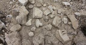 Un chantier de récupération des blocs a pu s’installer à l’extrémité du croisillon du portail sud. Le lapidaire mis au jour dans cette zone correspond à un atelier de taille d’un ensemble de petits blocs finement sculptés figuratifs (têtes, mains, drapés, dais). Ils sont alors abandonnés sur place au profit des blocs architecturaux qui pouvaient être réemployés pour des constructions civiles ou religieuses hors de la ville.
