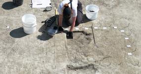 Les archéologues prélèvent des échantillons de terres contenant des anciens pollens, charbon de bois et coquillages. Ces prélèvements sont faits avec le plus grand soin, afin de ne pas polluer les échantillons et de ne pas fausser les résultats.