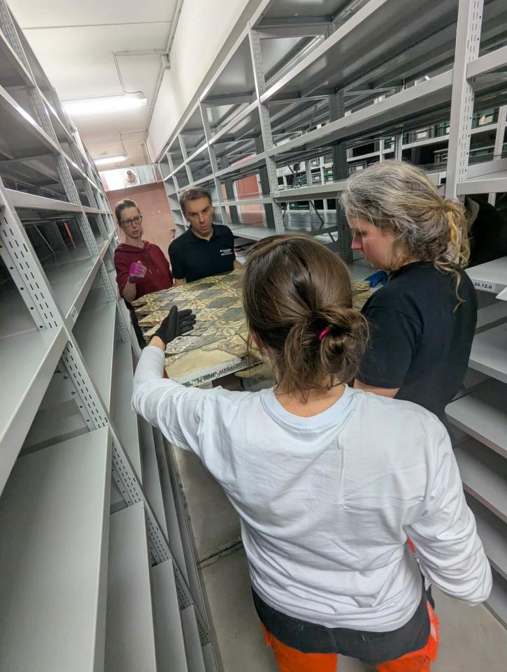 Dès le 26 janvier, les pavements restaurés ont été réceptionnés, contrôlés, manipulés, stockés et réintégrés dans les espaces de conservation. Cette opération délicate a mobilisé pleinement les compétences et le professionnalisme des agents des services de la conservation et des publics et de l’archéologie préventive, dont l’engagement et le travail rigoureux ont été essentiel à la réussite de cette étape.