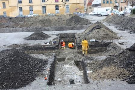Les fossés du château occupent une grande partie du sous-sol au nord et à l’est de la place (3500 mètres carrés sur les 6000 mètres carrés sondés).