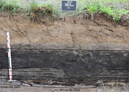 Enfin, au-dessus de ces niveaux, une tourbière caractérisant des eaux plus stagnantes s’est mise en place au Moyen Âge.