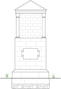 L’archéologue, à partir de découvertes similaires, propose une hypothèse de restitution du plus grand mausolée à partir des fondations maçonnées de 6 mètres de côté.