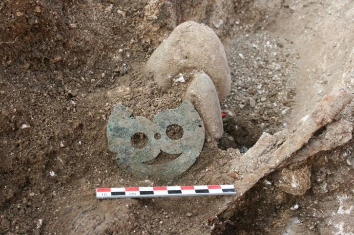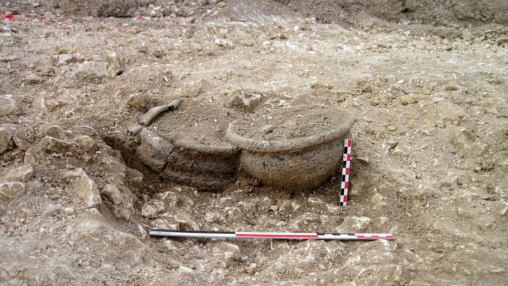 Au sud de la zone de fouille, ce sont les éléments funéraires qui dominent. Deux sépultures à incinération ont fait l’objet d’une fouille et d’une observation complète. Elles contenaient un amas osseux correspondant aux restes du défunt après la crémation. Cet amas était associé à une ou deux céramiques. Dans l’une des sépultures, les archéologues ont découvert un objet métallique, dont la forme fait penser à une clé.