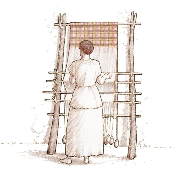 À proximité, une fosse a livré de nombreux objets en céramique comme des poteries ou des pesons triangulaires. Ces derniers servent comme poids pour tendre les fils lors de la confection de tissu à l’aide d’un métier à tisser. Il est donc probable qu’une zone d’activité domestique fonctionnait à proximité.